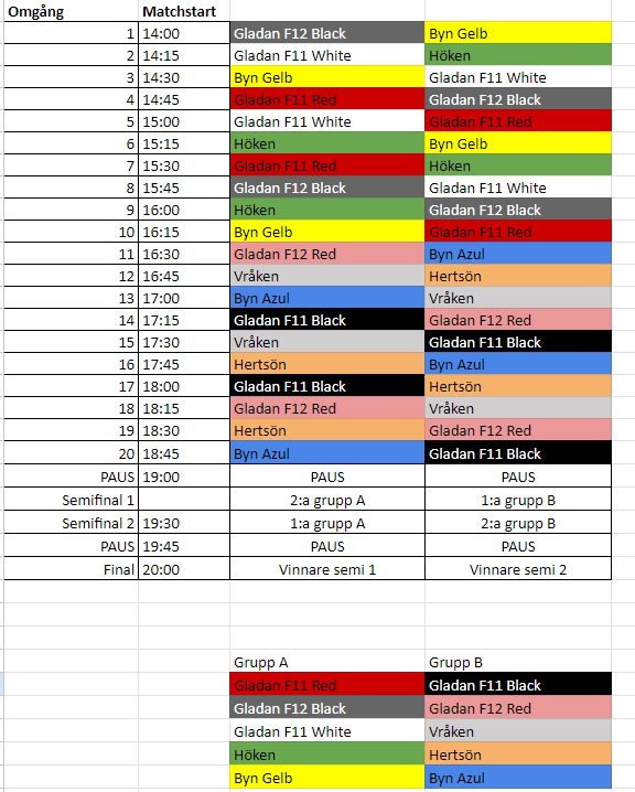 Här kommer lagen och spelschema för 3v3 turneringen 29/12 samt länk till resultatrapporteringen.