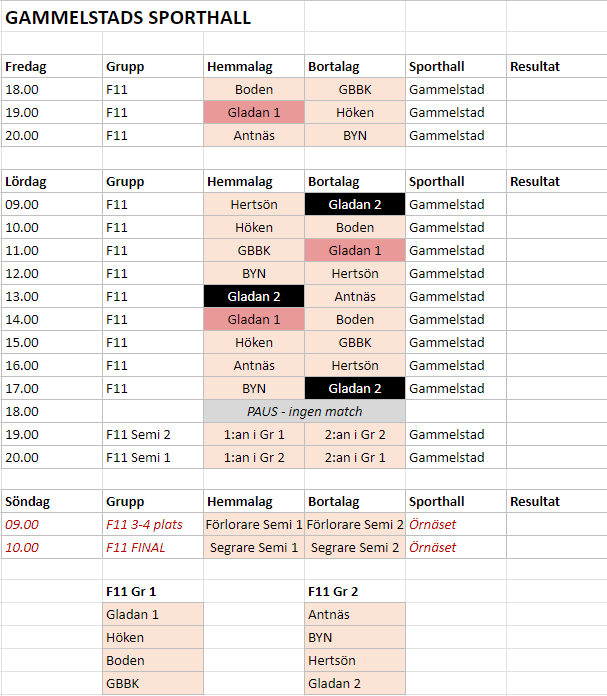 Vi har anmält två lag, Gladan 1 (Röd) & 2 (Svart).